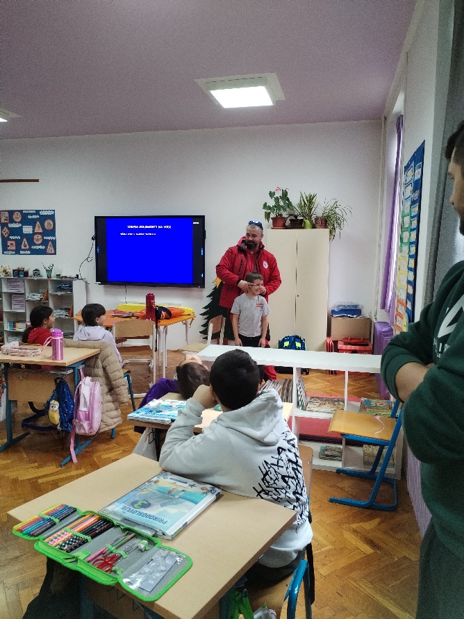 U ponedjeljak 1. prosinca 2025. učenike od 1. do 4. razreda posjetio je instruktor spasilačke službe Hrvatskog Crvenog križa. Održao je poučnu i zanimljivu radionicu u sklopu projekta „Kodeks sigurnosti na vodi“, čiji je cilj podizanje svijesti djece o važnosti odgovornog ponašanja na moru, rijekama i jezerima.